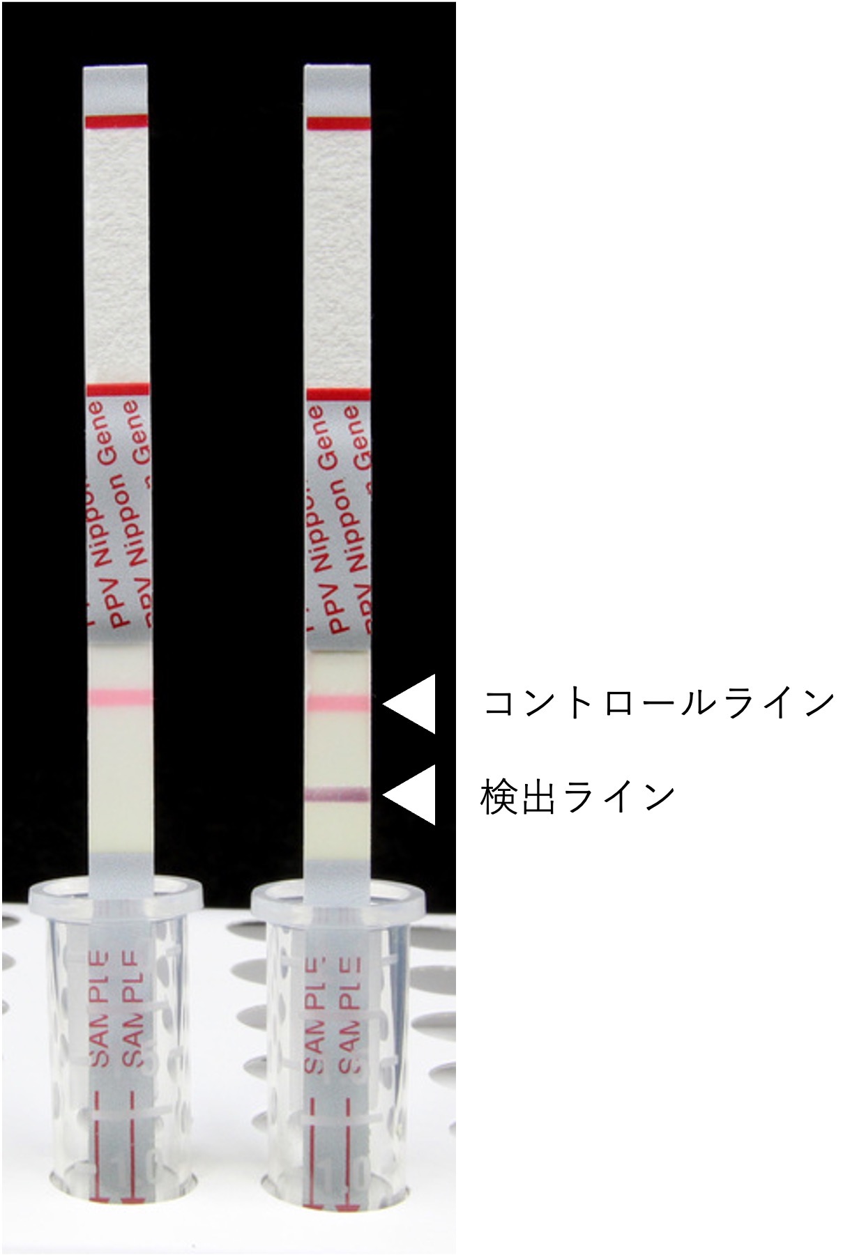 イムノクロマト法を使えば顕微鏡や培地がなくても、病原体の有無が短時間で調べられるうえ、場所を選ばず温室や野外でも迅速かつ簡便に実施できるため、生産現場での迅速診断に適しており、植物病の拡大を早期に抑止することができる。