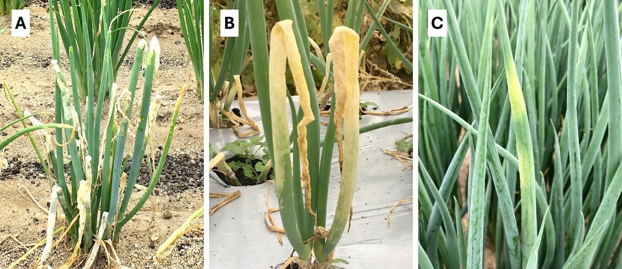 ネギハモグリバエは、幼虫がネギ、ニラ、タマネギなどのネギ属の野菜を加害する。ネギやニラでは、収穫物となる葉が加害されるため、生産物の品質が低下する。2000年代初めに京都府などの葉ネギ※栽培で多発したが(1)、防除効果の高い殺虫剤の開発により沈静化した(2)。しかし2016年頃から、従来の食害痕とは異なるネギ葉全体が白化する被害が、全国各地のネギ栽培ほ場で見られるようになった(図1)。