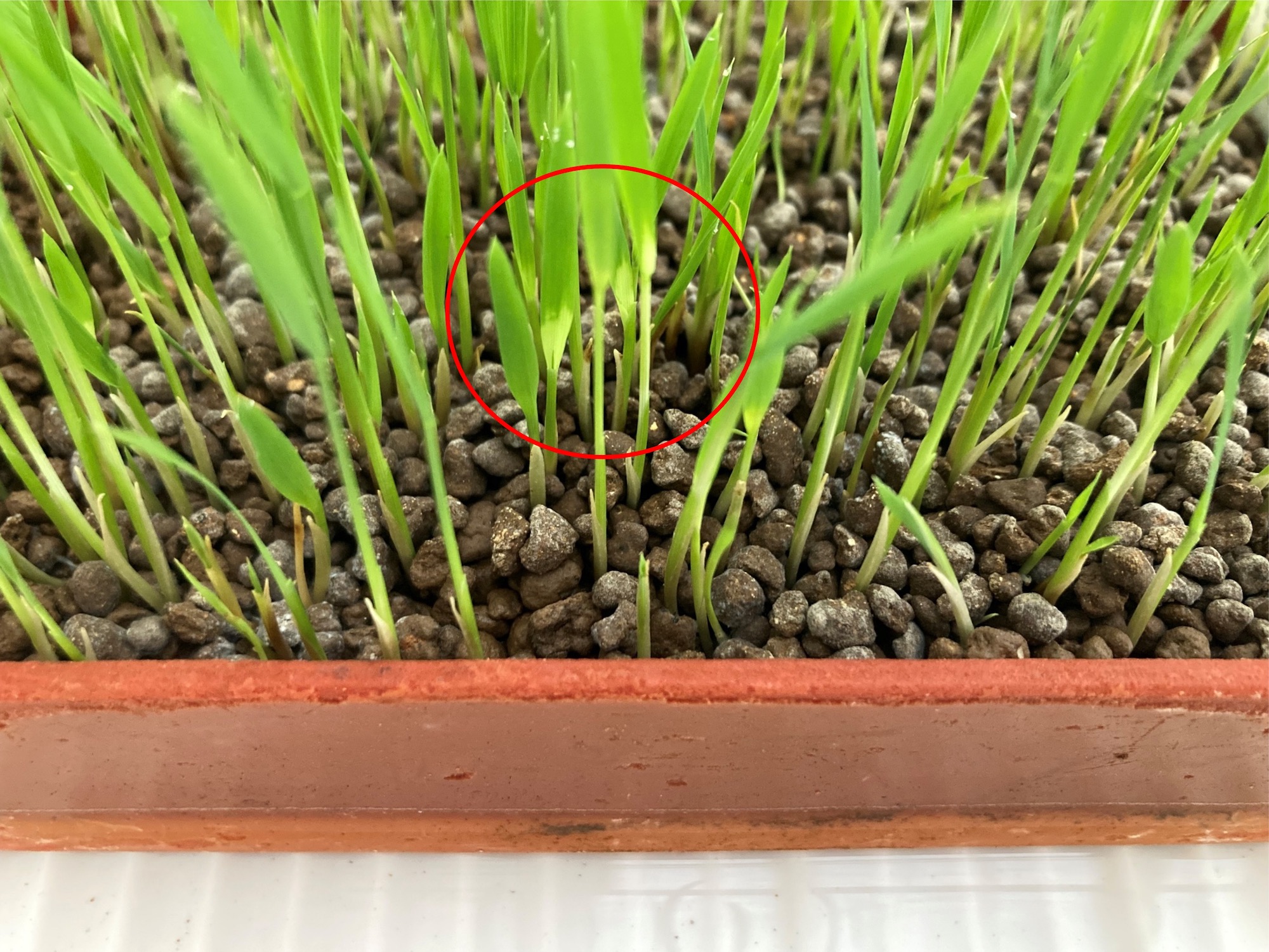※発芽器で発芽させた苗を、弱い光にあてて葉緑体を活動させ、徐々に緑色にすること。