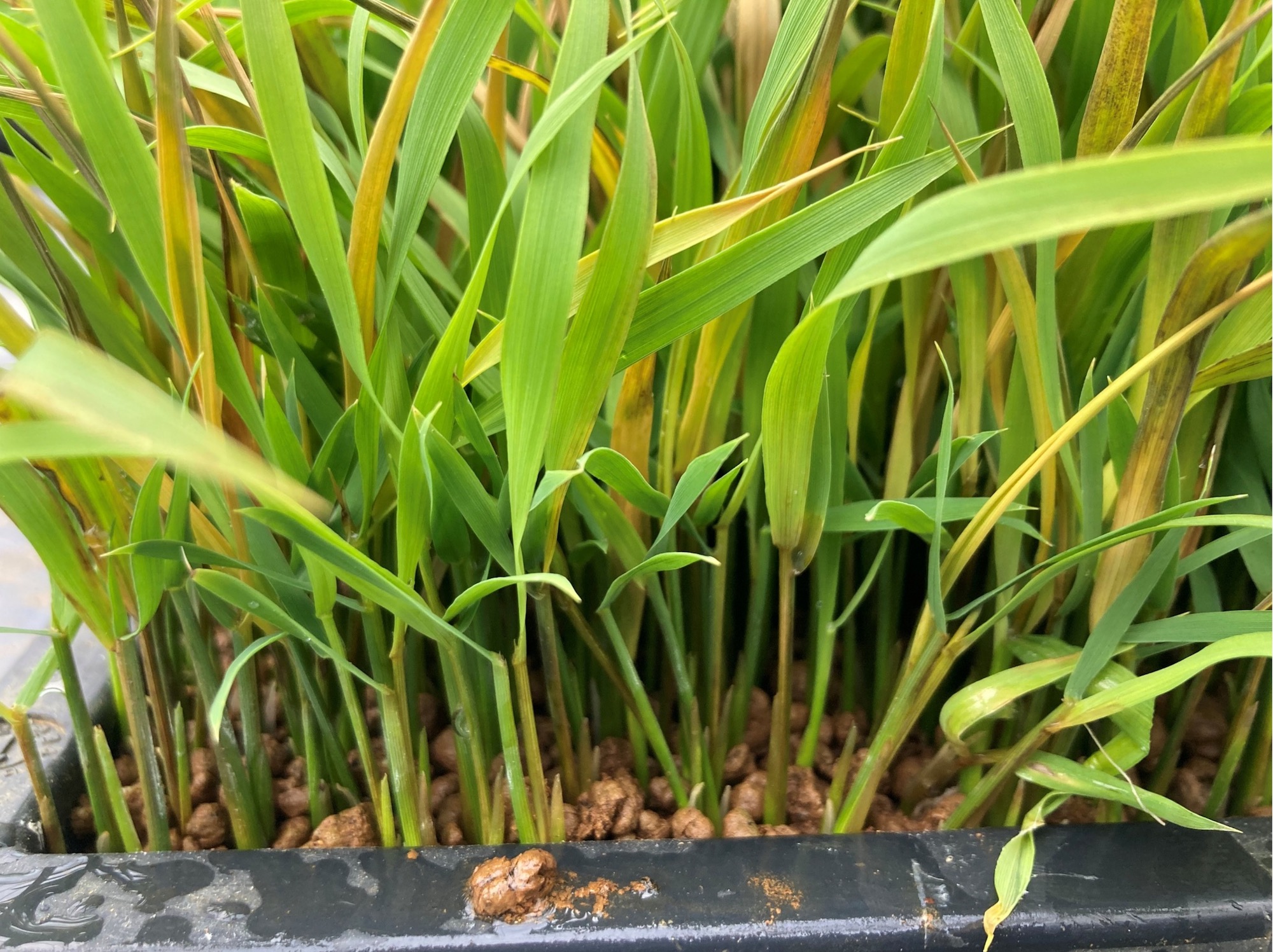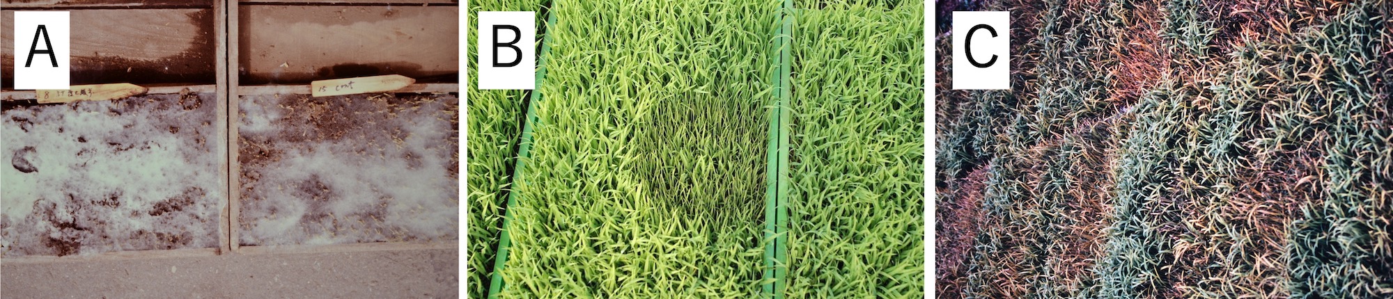 プール育苗は育苗期の病害が発生しにくい環境を整えるメリットがあるが、これだけで完全に植物病の発生を抑えることができるわけではない。発病苗をみつけたら速やかに除去し、植物病が広がるのを防ぐ。温湯消毒や薬剤による防除(種子消毒)と併用すれば、より確実な効果が期待できる。なお、プール育苗は、今回紹介した3種類の植物病のほかにも、苗立枯病(図6;リゾープス属菌、ピシウム属菌、フザリウム属菌)などの発生も抑制できる(5, 6)。