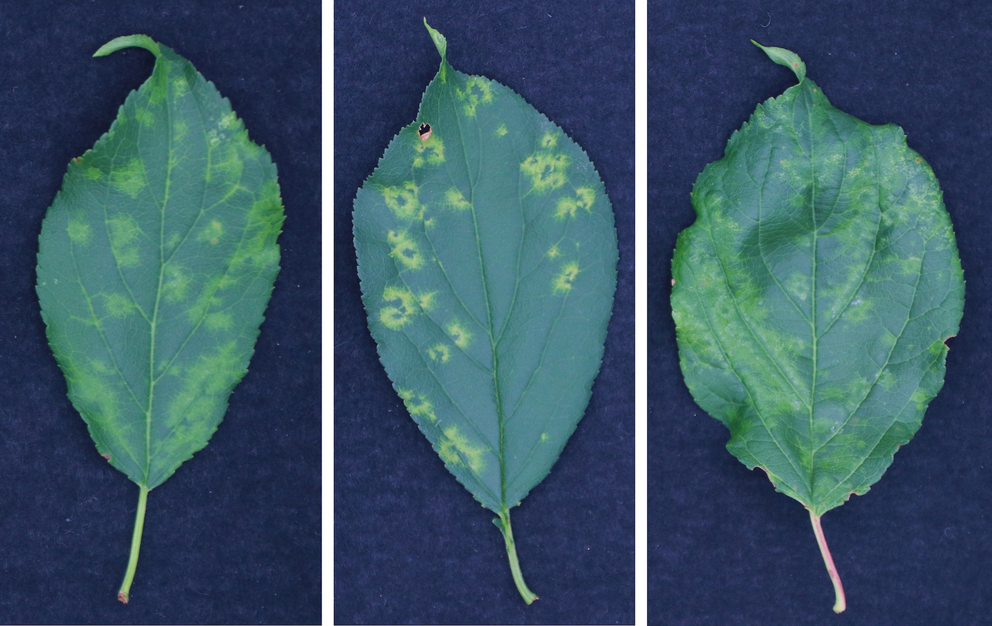 PPVの発生を知るうえで、最も良い目印になるのはウメの葉である。ウメは全国各地に植えられており、感染した時の葉に現れる症状がわかりやすい(図)。ウメの実がなる時期には、ぜひ実だけでなく葉にも目を向けていただき、もし異変に気付いた場合には、最寄りの病害虫防除所や植物防疫所に相談していただきたい。